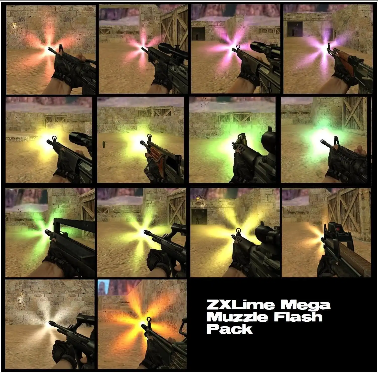 Эффектные спрайты вспышки из дула для Контр-Страйк 1.6 те, которые улучшат шутер намного увлекательней. Решитесь скачать не стандартный внешний вид искы из дула оружия. Крутая текстура меняет масштаб и красочность искр при выстрелах. Скачать огонь выстрелов для CS 1.6 в один клик.