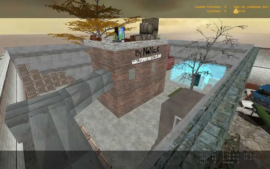 Посмотрите на красивую зомби карту zm_zombynas_fix3 даже для игры против ботов в КС Соурс. Нормальный размер карты, красивые текстуры, для игры самое то. Карта способна зацепить многих просто игроков на вашем игровом сервере. Стандартные карты достаточно часто изводят себя, так что предлагаем протестировать свежую. Здесь интерес составляет в том что, воплотили новые идеи, обдуманы коридоры и укрытия. Скачать популярную карту для Counter-Strike Source проверенный на работу.
