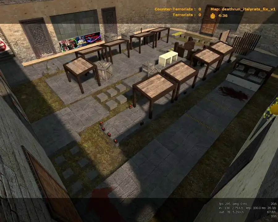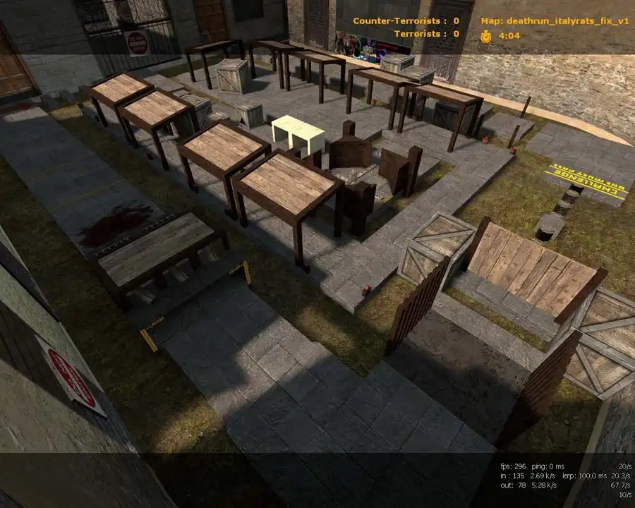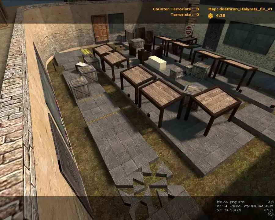 Давайте посмотрим на светлую карту deathrun_italyrats_fix_v1 даже для игры против ботов в КСС в34. Отличная идея создания, интересные текстуры, для игры самое то. Данная карта может зацепить многих геймеров на вашем сервере. Затертые карты достаточно часто теряют свой интерес, так что заявляем поставить более свежую. Вы будете удивлены тем что, совместили новые идеи, рассчитаны подходы и укрытия. Скачать популярную карту для CS Source можно прямо у нас на сайте.